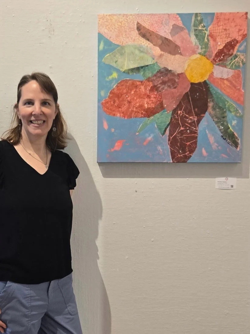 Hi, I'm Michelle and I live in North Carolina with my husband and two rescue dogs. I have always loved being outdoors and spending time in nature. I also love exploring this passion via my paintbrush and glue stick.